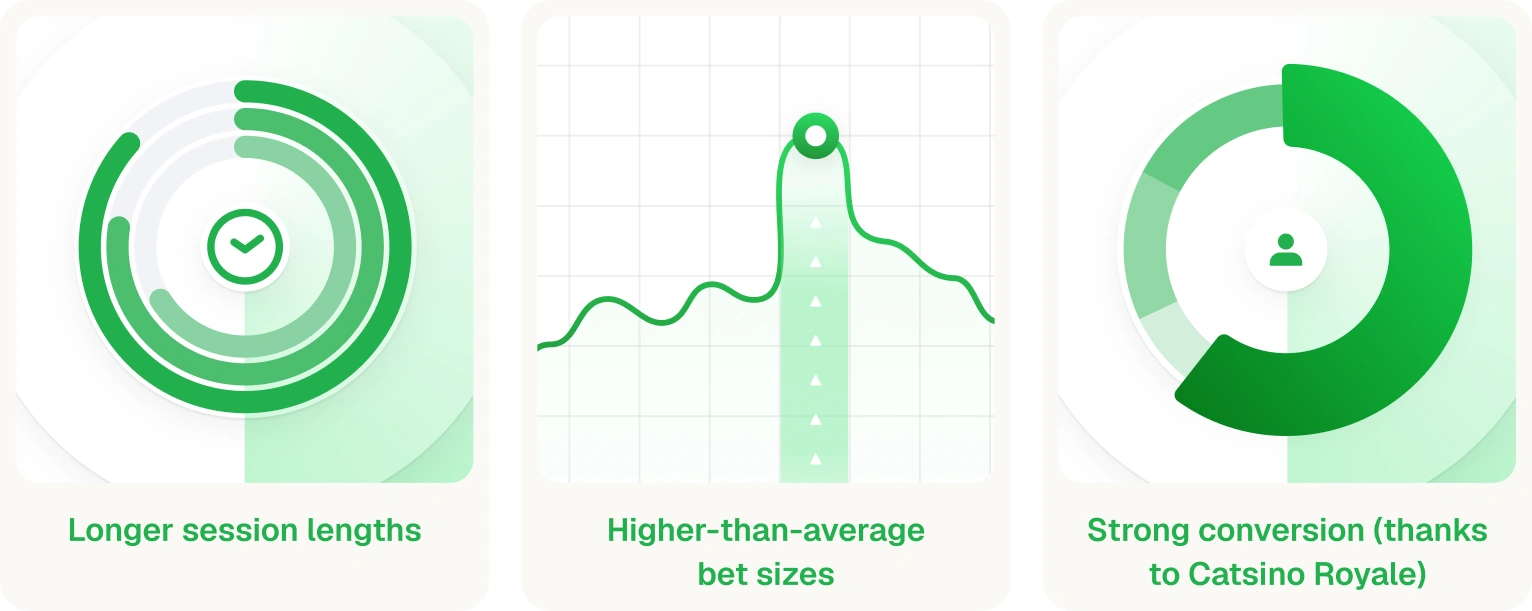 In addition to the impressive amount of aggregated content, we also launched Catsino Royale, a fully branded online slot designed specifically for the Finnish market and developed by one of our in-house studios, Fantasma Games.